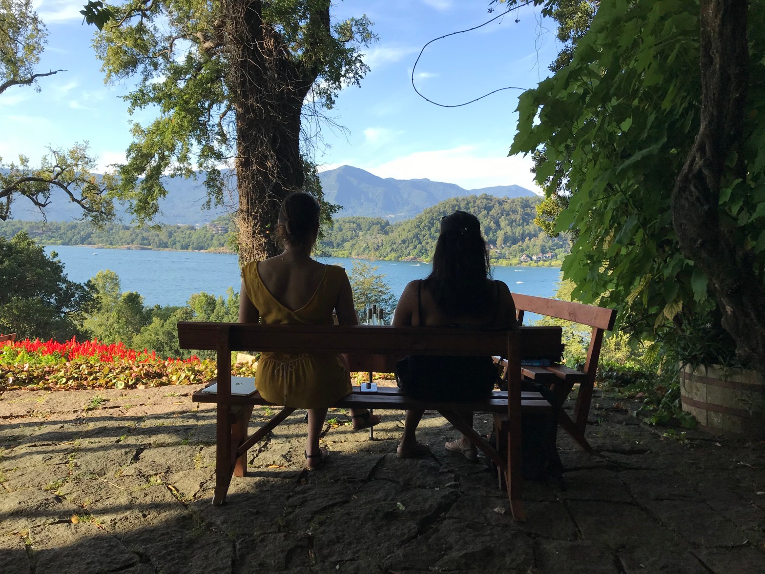 Omdat het bereik op de weg zeer te wensen over liet, besloten we bij het eerste hotel dat we tegenkwamen af te slaan, in de lobby een wijntje te bestellen en op die manier gebruik te maken van de WiFi, zodat we op zoek konden naar een slaapplek. Kansloos, in de wijde omtrek was elke accommodatie rood gekleurd. Het dichtstbijzijnde, beschikbare hotel lag op twee uur rijden. En het was inmiddels al negen uur geweest. De adembenemende schemering over het meer, waar de lobby uitzicht op had, zette snel door, het zou betekenen dat we in het aardedonker nog een aardige afstand zouden moeten overbruggen.