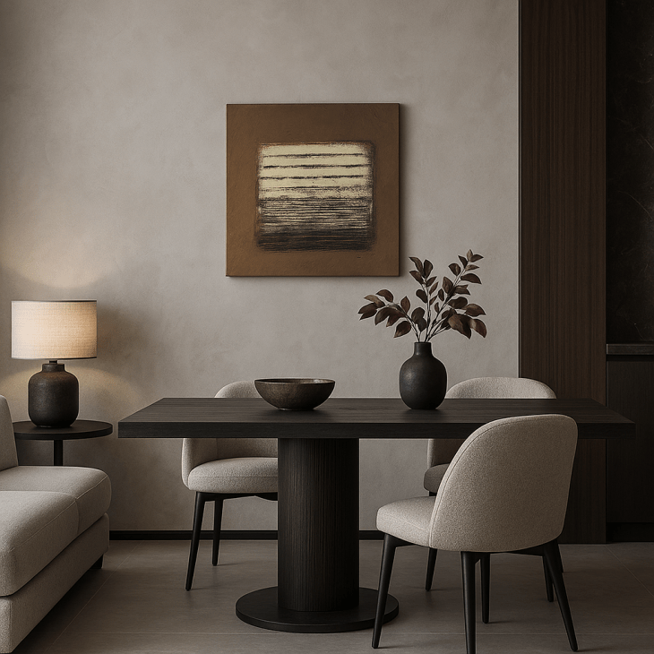 Het werk voelt gesloten én open. Kleur en textuur wisselen tussen weerstand en zachtheid. Wat op het eerste gezicht verstild lijkt, komt in beweging.